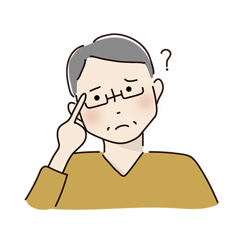 【ビジネス用】頭に指を当てて考える眼鏡の男性