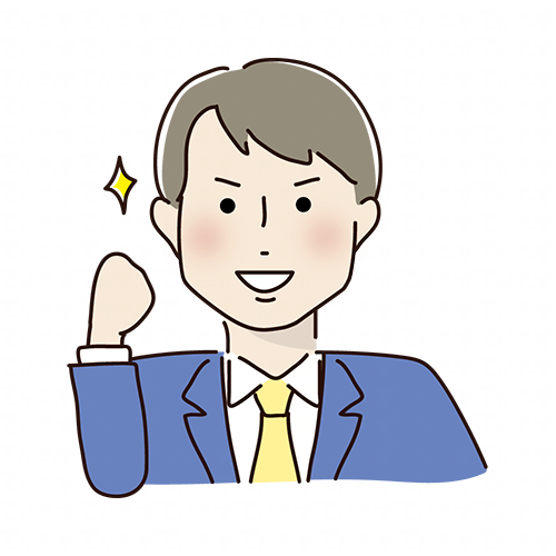 【ビジネス用】ガッツポーズをするスーツを着た男性