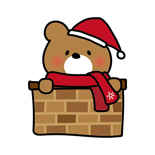 クリスマスに煙突から顔を出すくまぽて