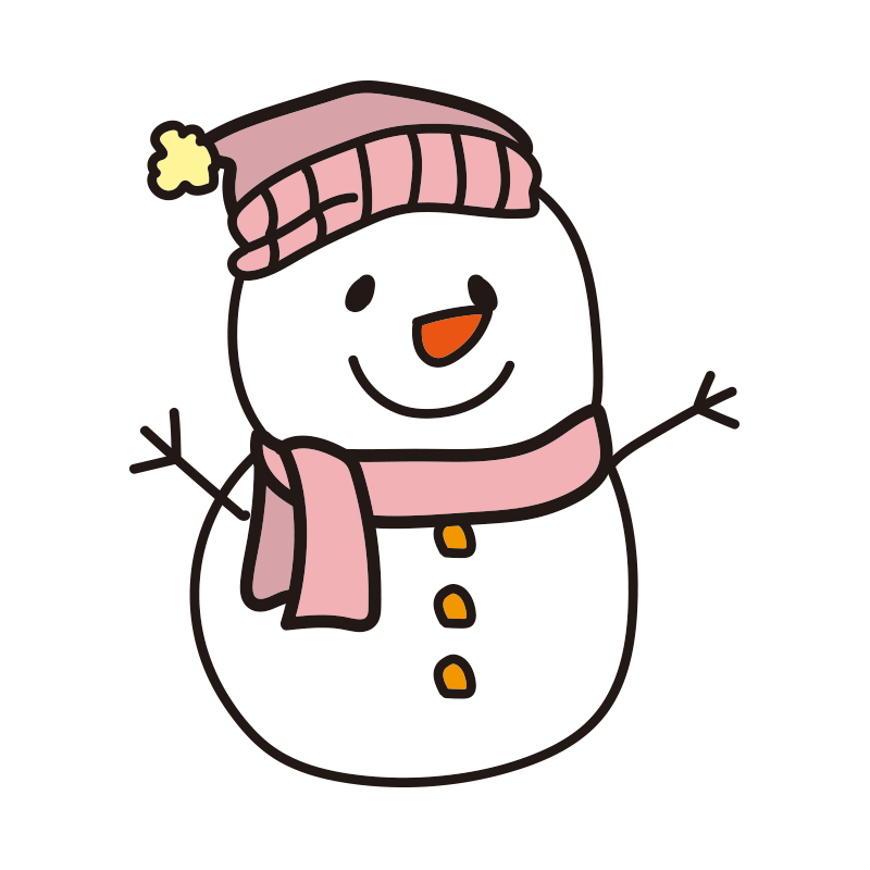 ピンクの帽子とマフラーの雪だるま