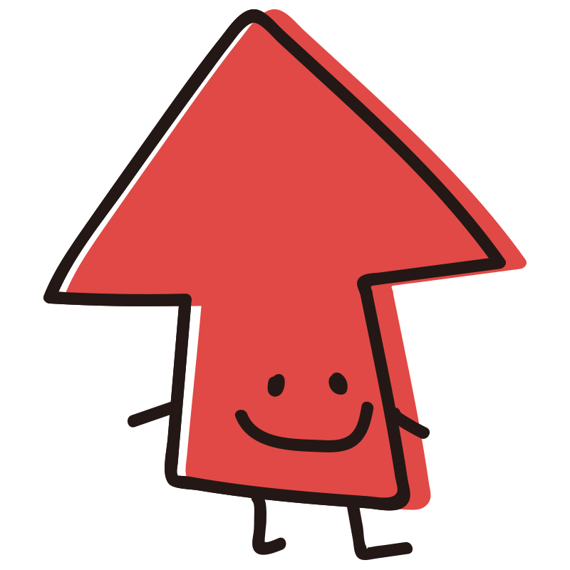 顔のある矢印 横向き赤