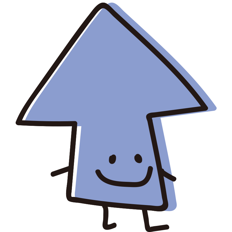 顔のある矢印 横向き青