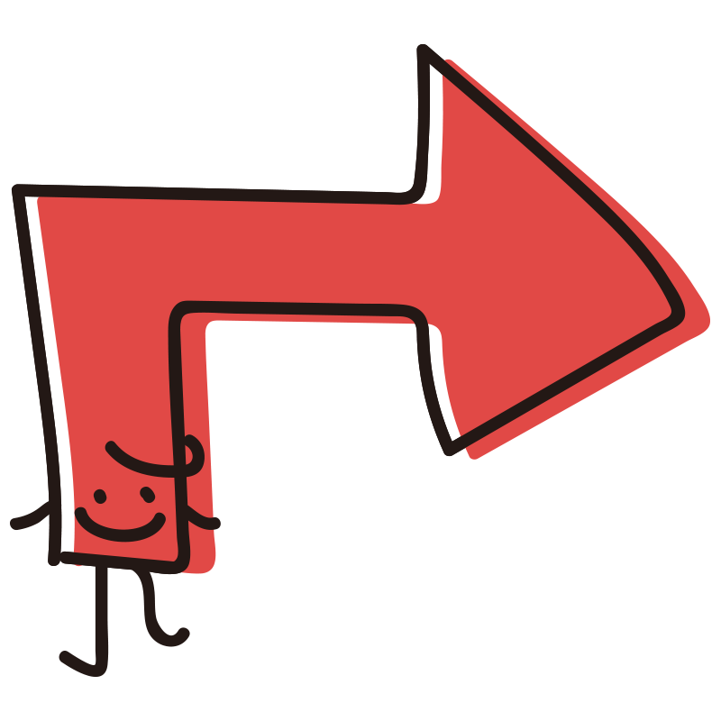 顔のある横矢印 赤