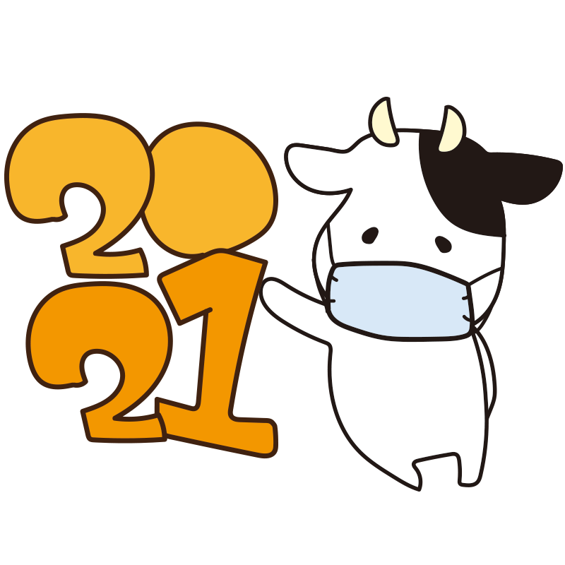 2021年に寄りかかるマスクをつけた牛(青)