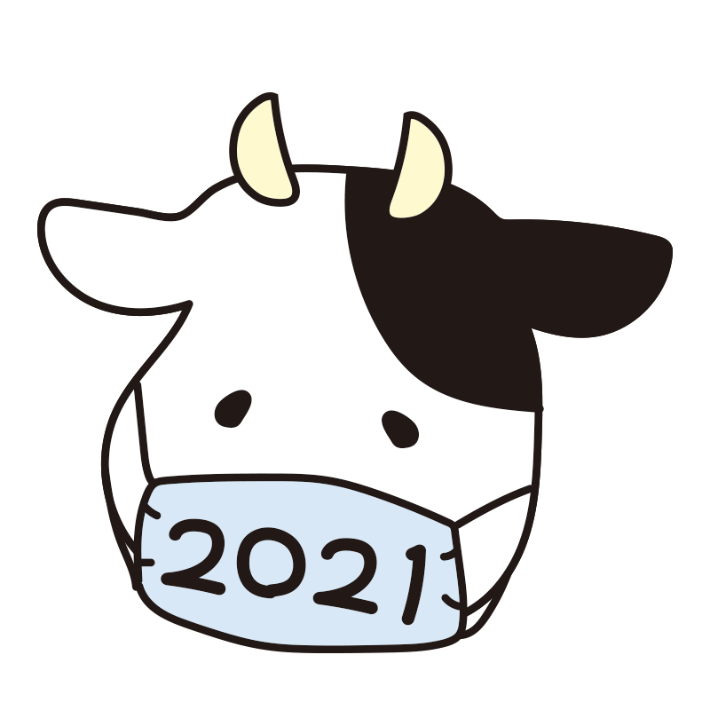 マスクに2021と書いてある牛(青)
