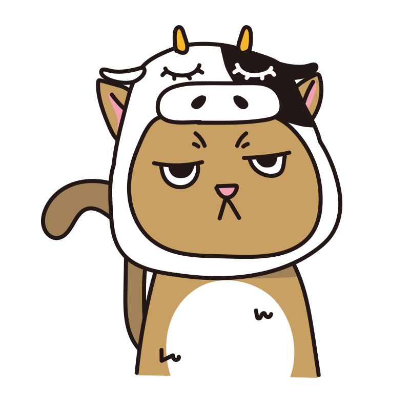 牛のかぶりもので不機嫌な猫(ハチワレ)