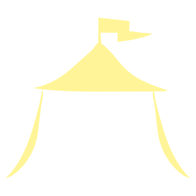 旗のなびいている黄色のテント
