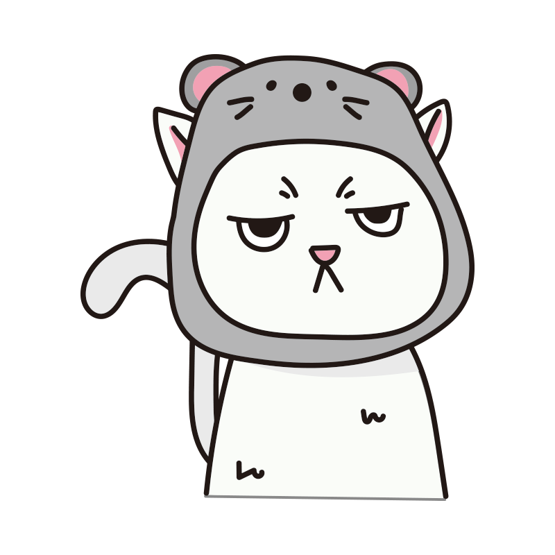 ネズミのかぶりもので不機嫌な猫(白)