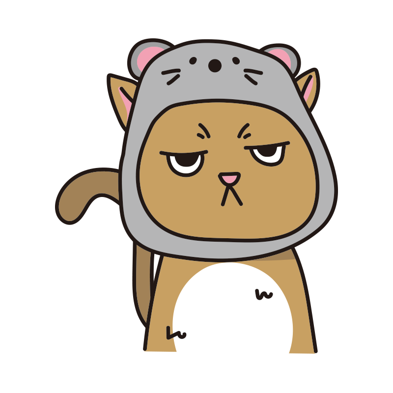 ネズミのかぶりもので不機嫌な猫(茶)