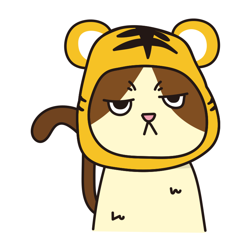 トラのかぶりもので不機嫌な猫(白)