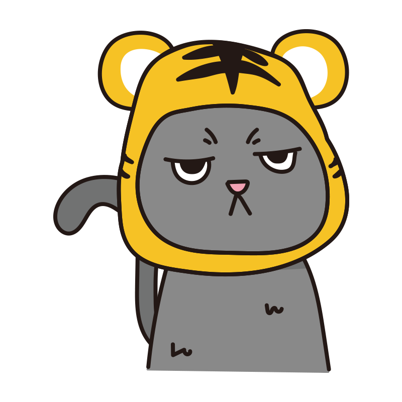 トラのかぶりもので不機嫌な猫(グレー)
