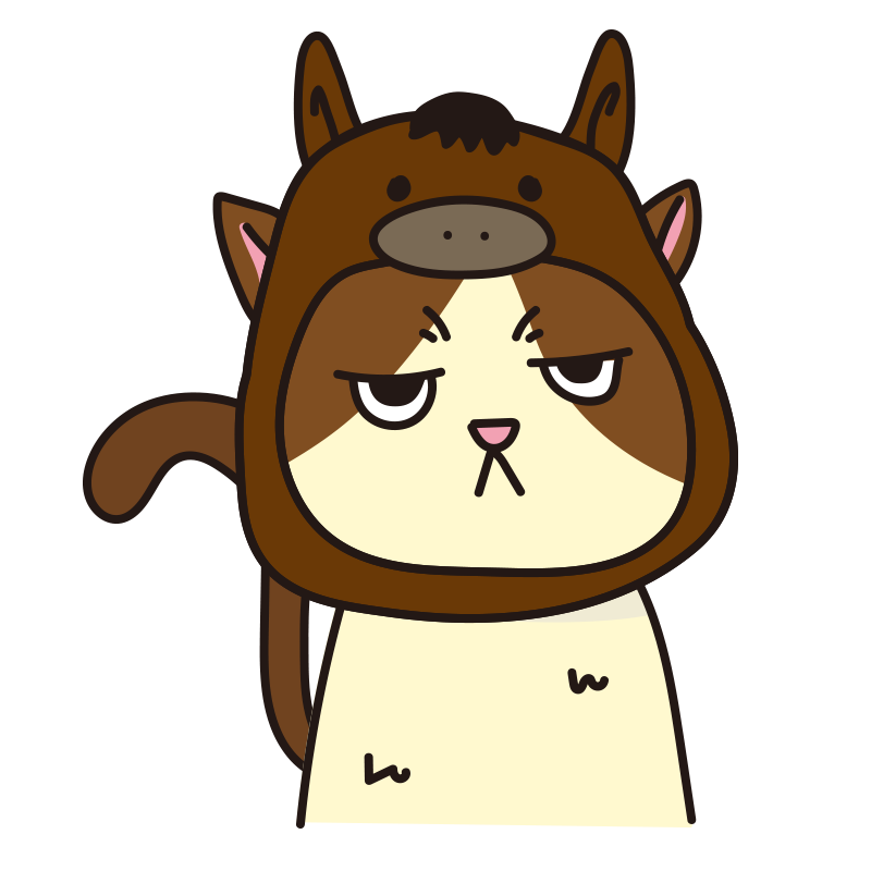 馬 のかぶりもので不機嫌な猫(ハチワレ)