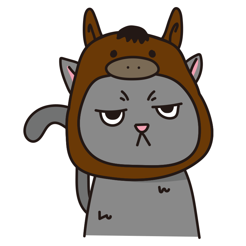 馬のかぶりもので不機嫌な猫(グレー)
