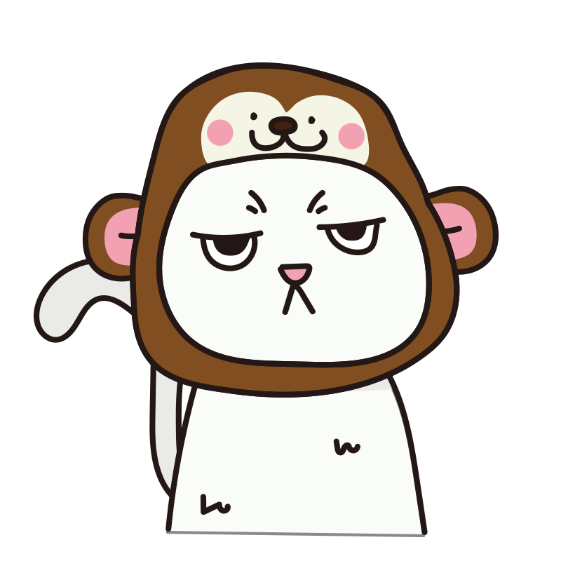 猿のかぶりもので不機嫌な猫(白)
