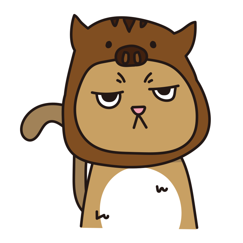 イノシシのかぶりもので不機嫌な猫(茶)