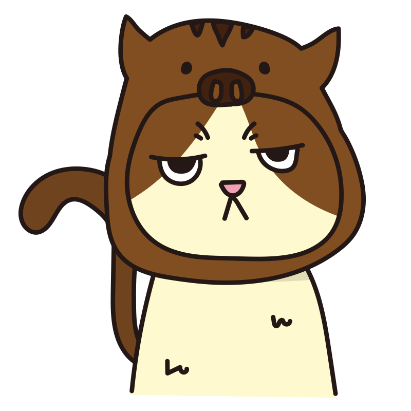 イノシシ のかぶりもので不機嫌な猫(ハチワレ)