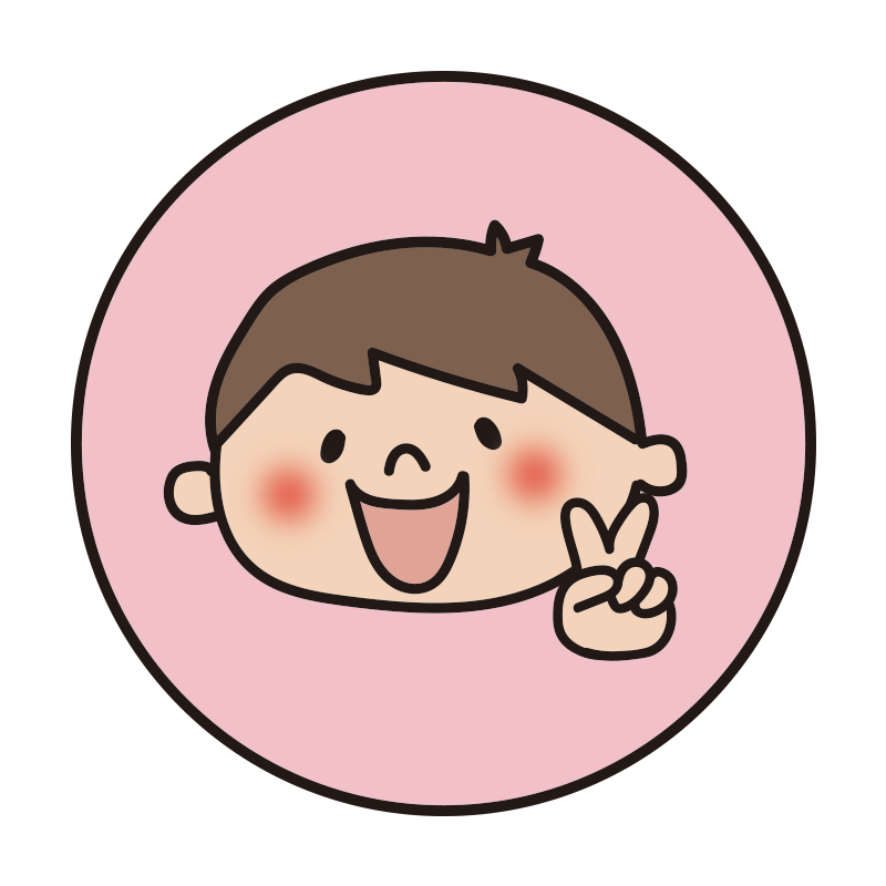 ピンクの丸の中に男の子1(チョキ)