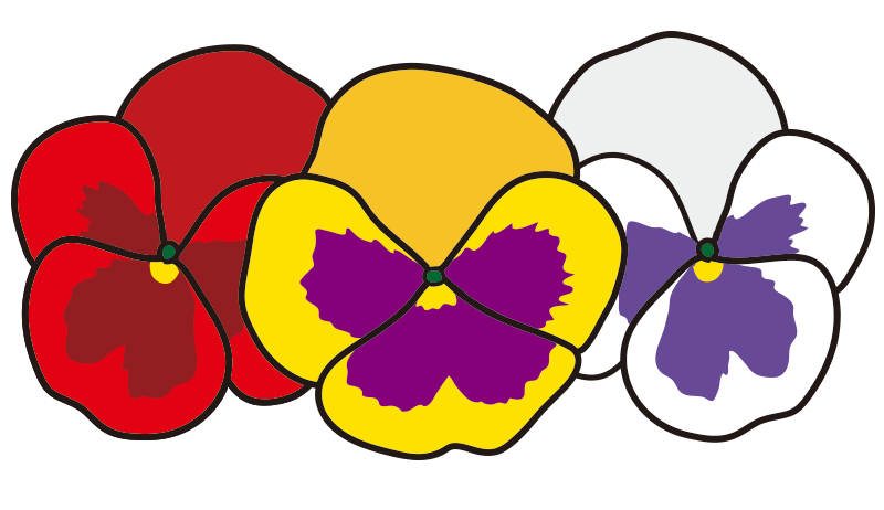 3つ並んだパンジーの花1