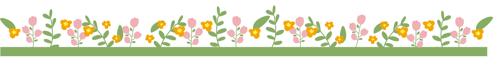 ピンクの小花とオレンジ色の小花のライン