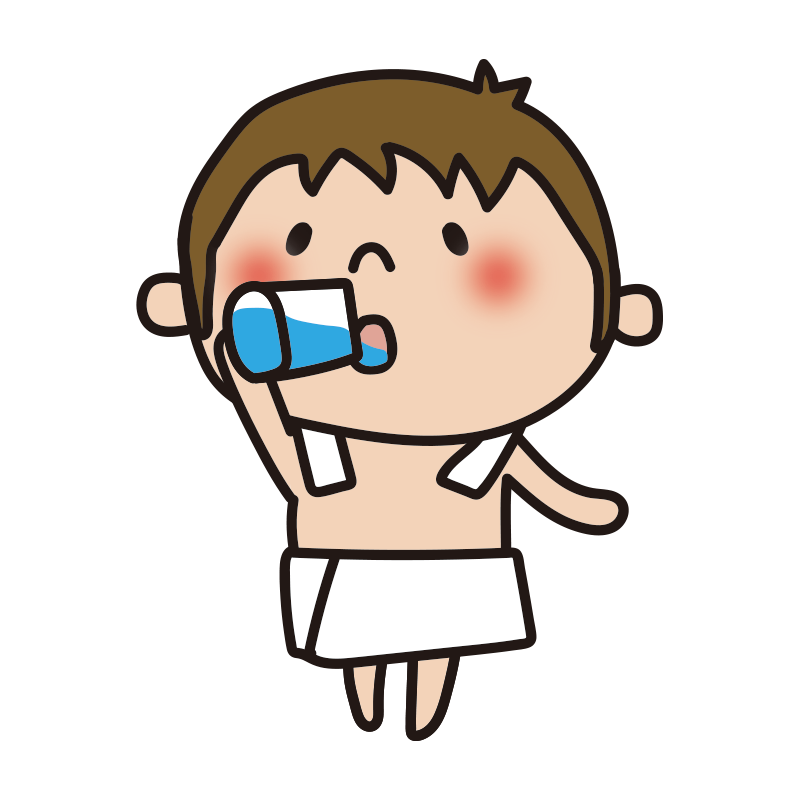 お風呂上りに水を飲む男の子
