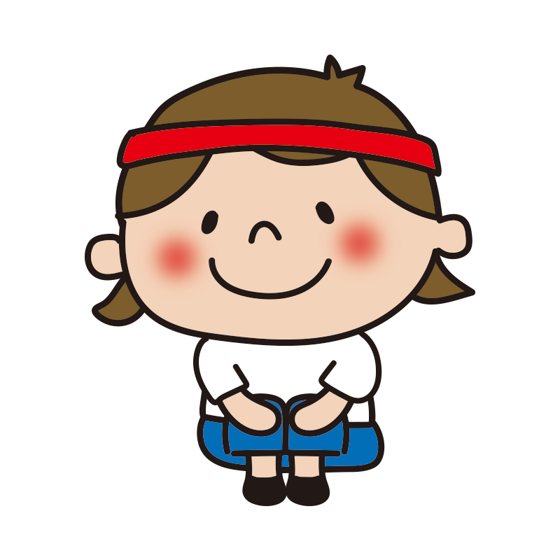 運動会で座っている赤組の女の子