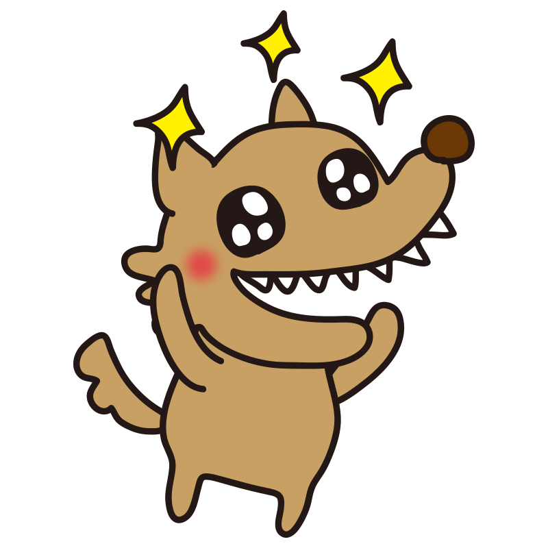 目をキラキラさせて喜ぶ怖くないオオカミ