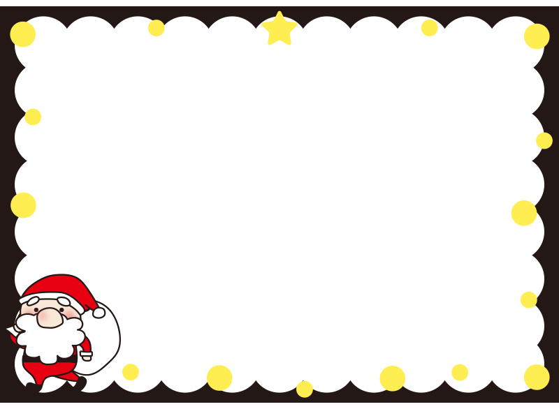 HOME枠 プレゼントを運ぶサンタクロースの黒い枠(横) 2021年11月10日 枠 プレゼントを運ぶサンタクロースの黒い枠(横) プレゼントを運ぶサンタクロースの黒い枠(縦) トナカイがたくさんのプレゼントを運んでいる枠(縦)