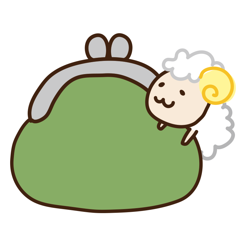 がま口の財布に乗るヒツジ