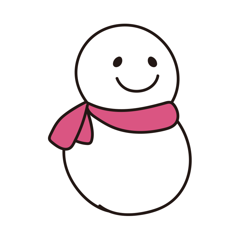 ピンクのマフラーをしたシンプルな雪だるま