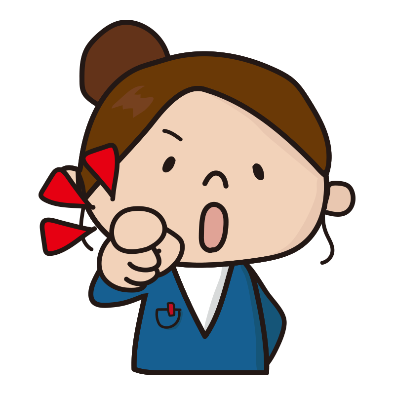 ウィンクしながらワンポイントアドバイスするお局さん