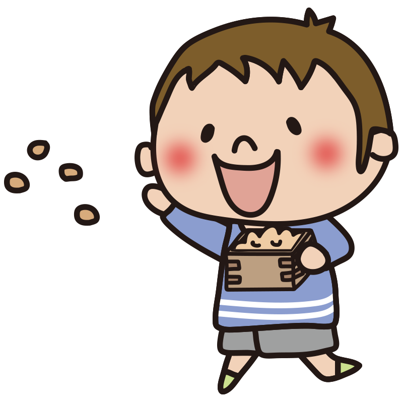 節分で豆まきをする男の子