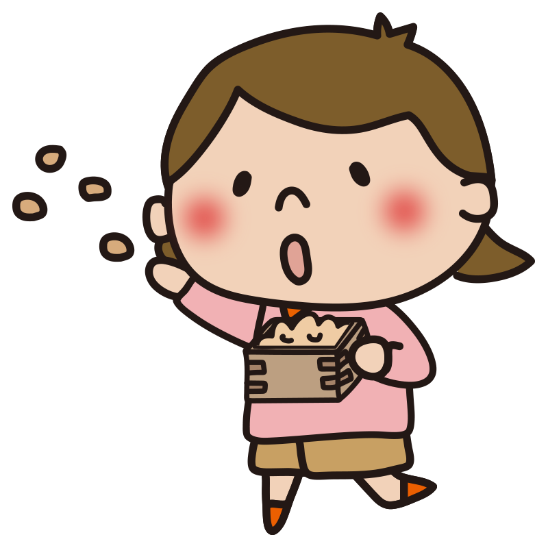 節分で豆まきをする女の子