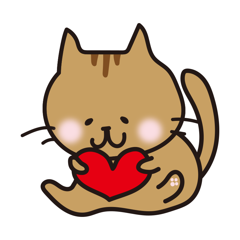 ハートを抱きしめる茶色い猫