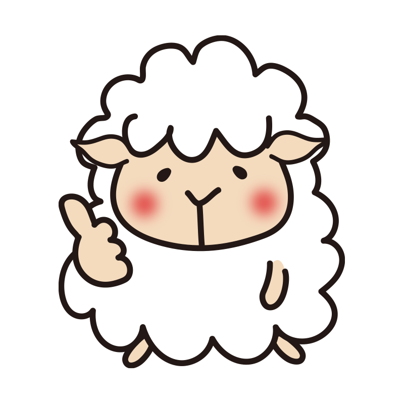 いいねのポーズをするほっぺが赤い羊