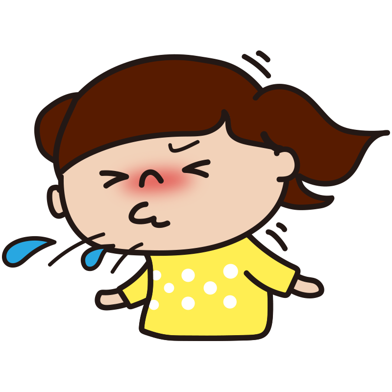 くしゃみをして唾が飛んでいる子供のイラストです。花粉症などのアレルギーや風邪の症状のイラストとしてお使いください。 くしゃみをする子供(女の子)