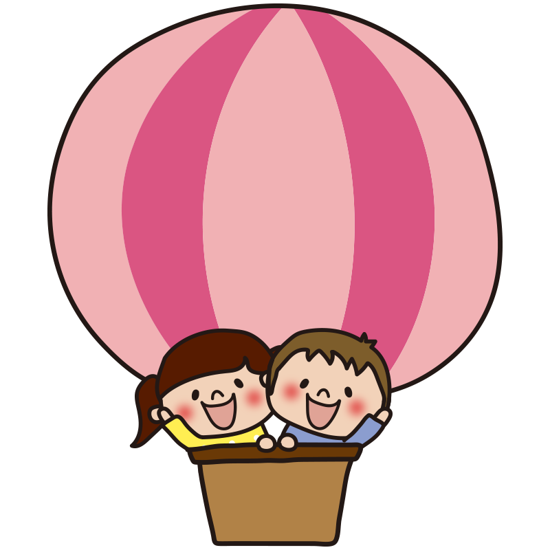 子供が乗ったピンク色の気球(文字が書ける枠あり)