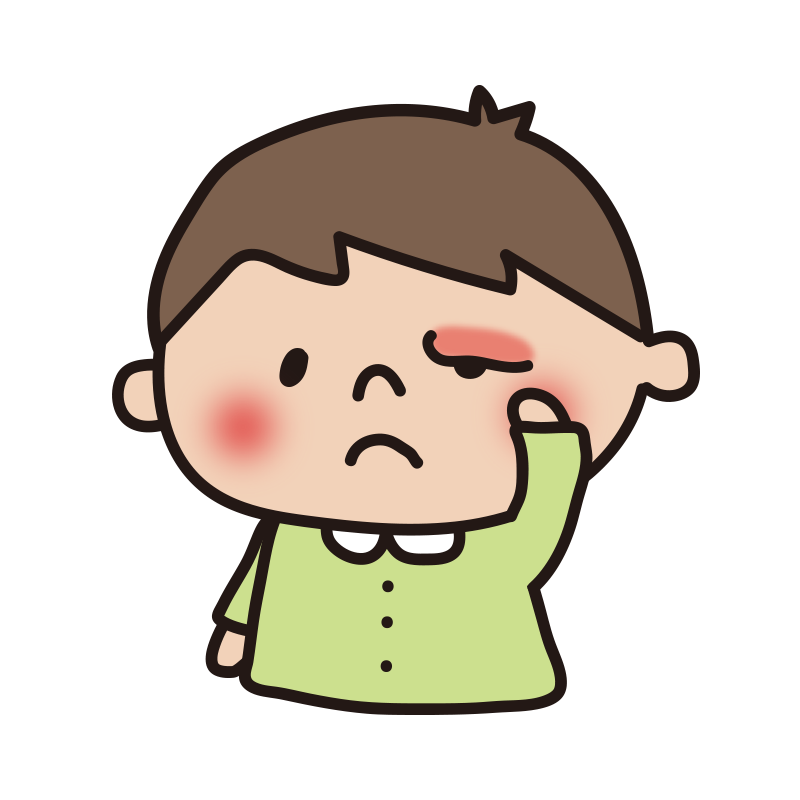 片方の目の上が腫れた子供(男の子)
