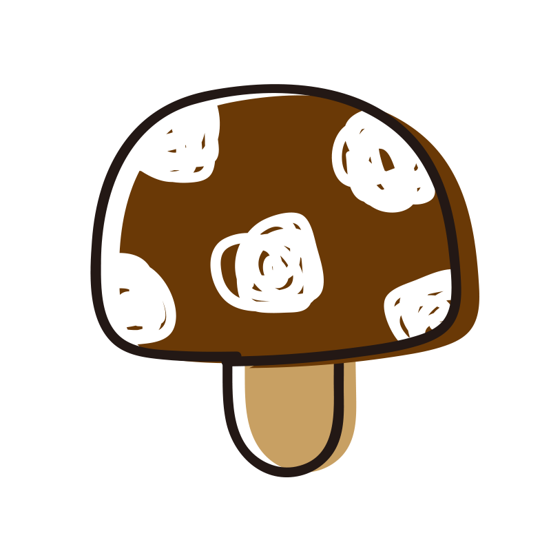 模様がぐるぐる手書きの茶色いキノコです。色味がチョコレート味を予感させるので、食べても安全かもしれません。