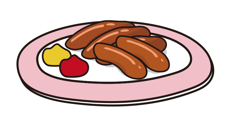 ピンクのお皿に乗ったウインナー