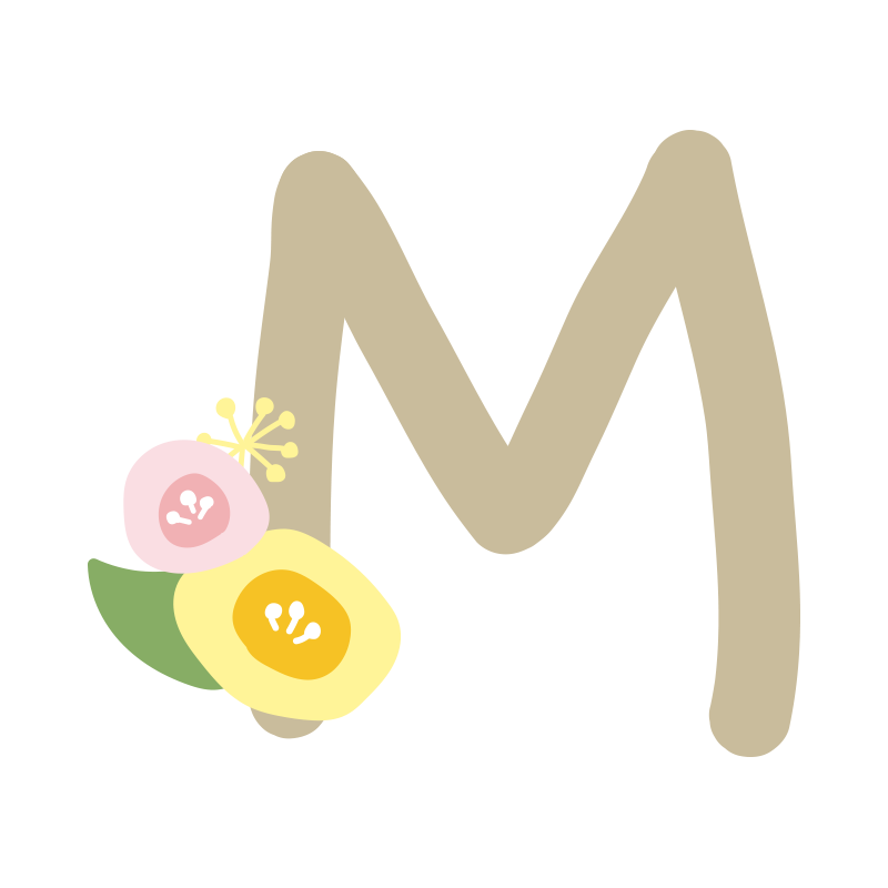 丸いお花のついたアルファベットのM