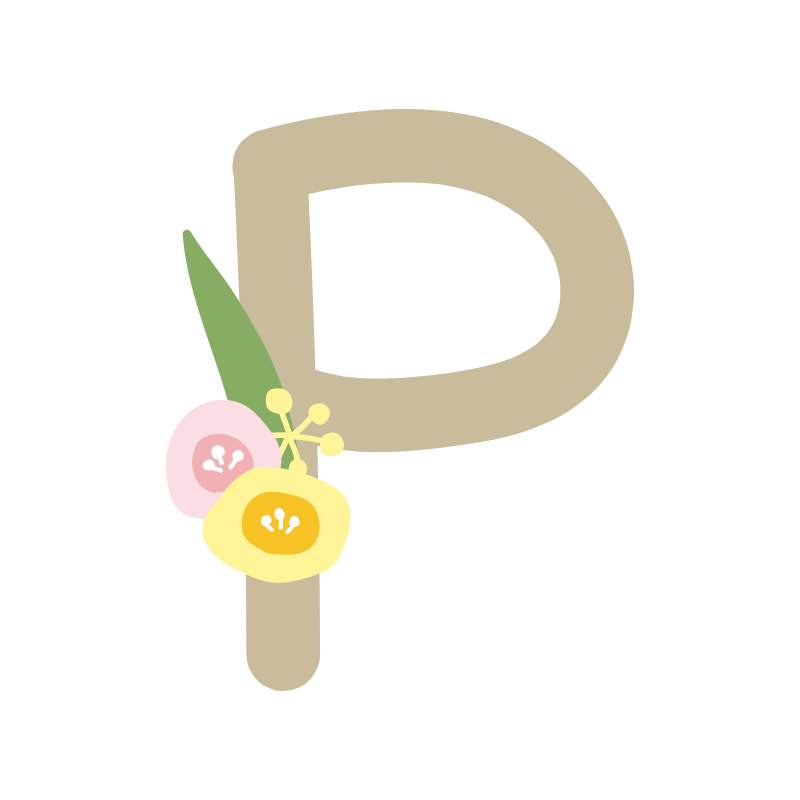 丸いお花のついたアルファベットのP