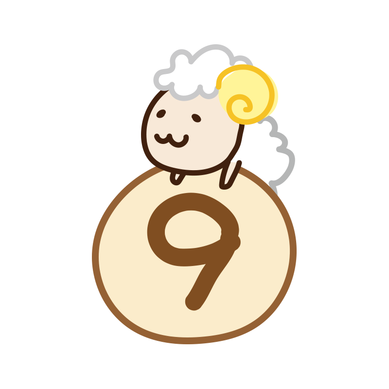 数字の9に乗るヒツジ