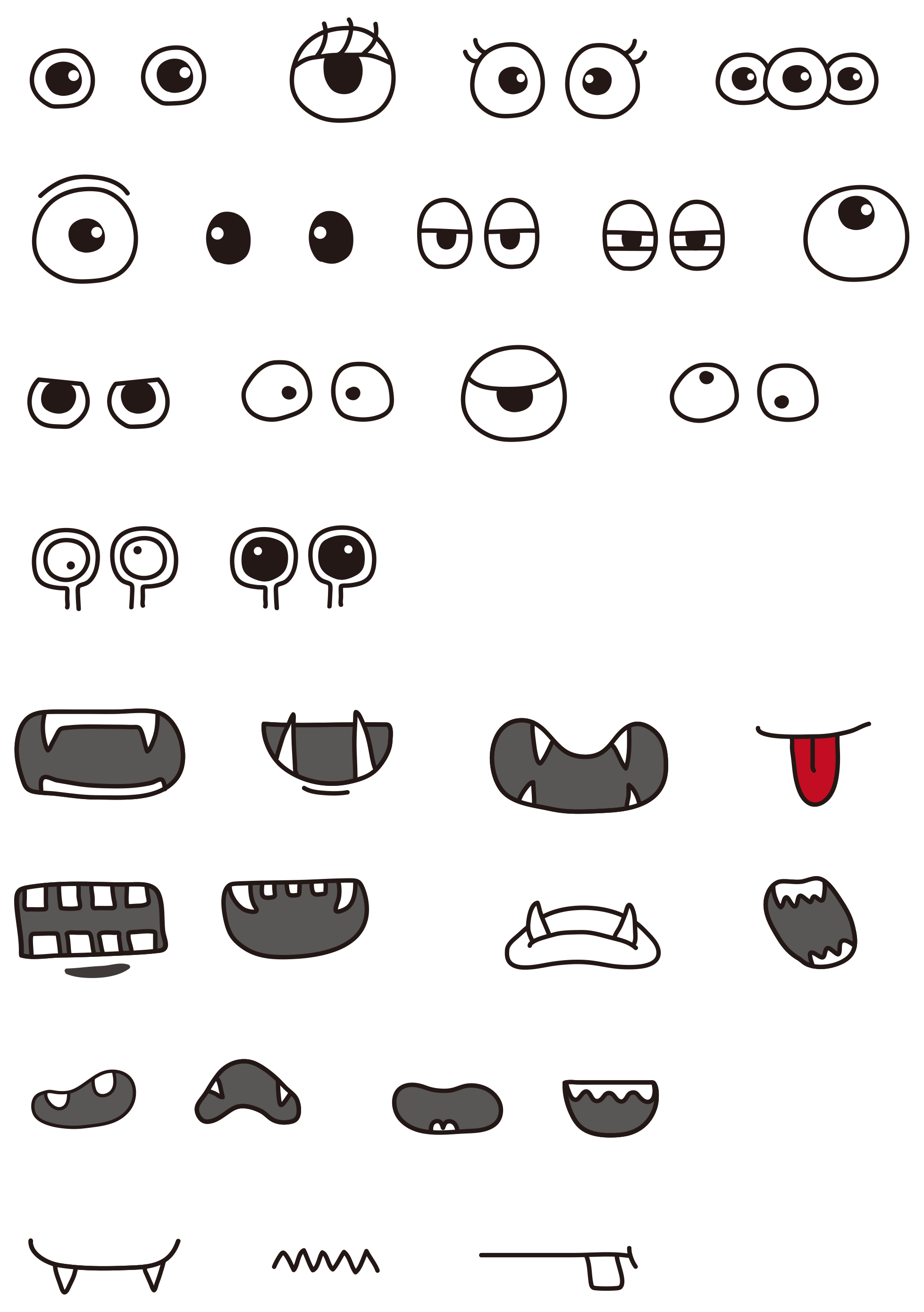 HOME人物 組み合わせて使ういろいろな目と口のセット 2022年6月28日 人物 【リクエスト】目と口を自由に選び、イラストを追加で描くことで様々なモンスターを作ることができます。 組み合わせて使ういろいろな目と口のセット 組み合わせて使ういろいろな口15 棒のチョコレートアイスに乗るパンダ