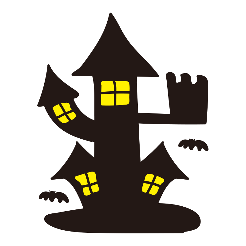 ハロウィンで大活躍するお城のイラストです。夜のお城をイメージして描きました。コウモリも飛んでいます。