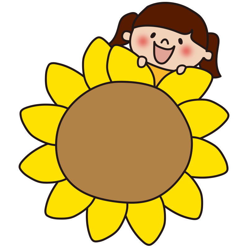 文字が書けるくらい大きなヒマワリに乗る子供(女の子2)