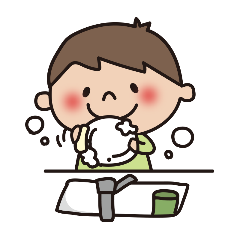 お皿洗いをする子供(男の子)
