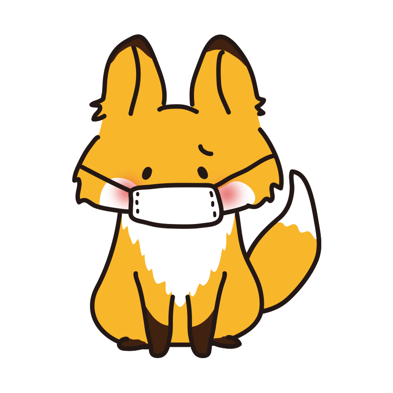 風邪をひいてマスクをしているキツネ