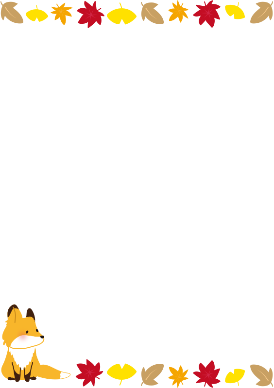 秋の葉っぱとキツネの枠(縦)