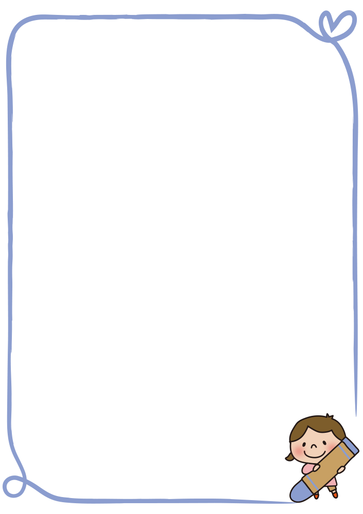 緑色のクレヨンでらくがきする女の子の枠(縦)