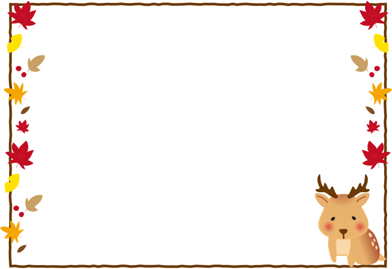 鹿と紅葉の枠(横)
